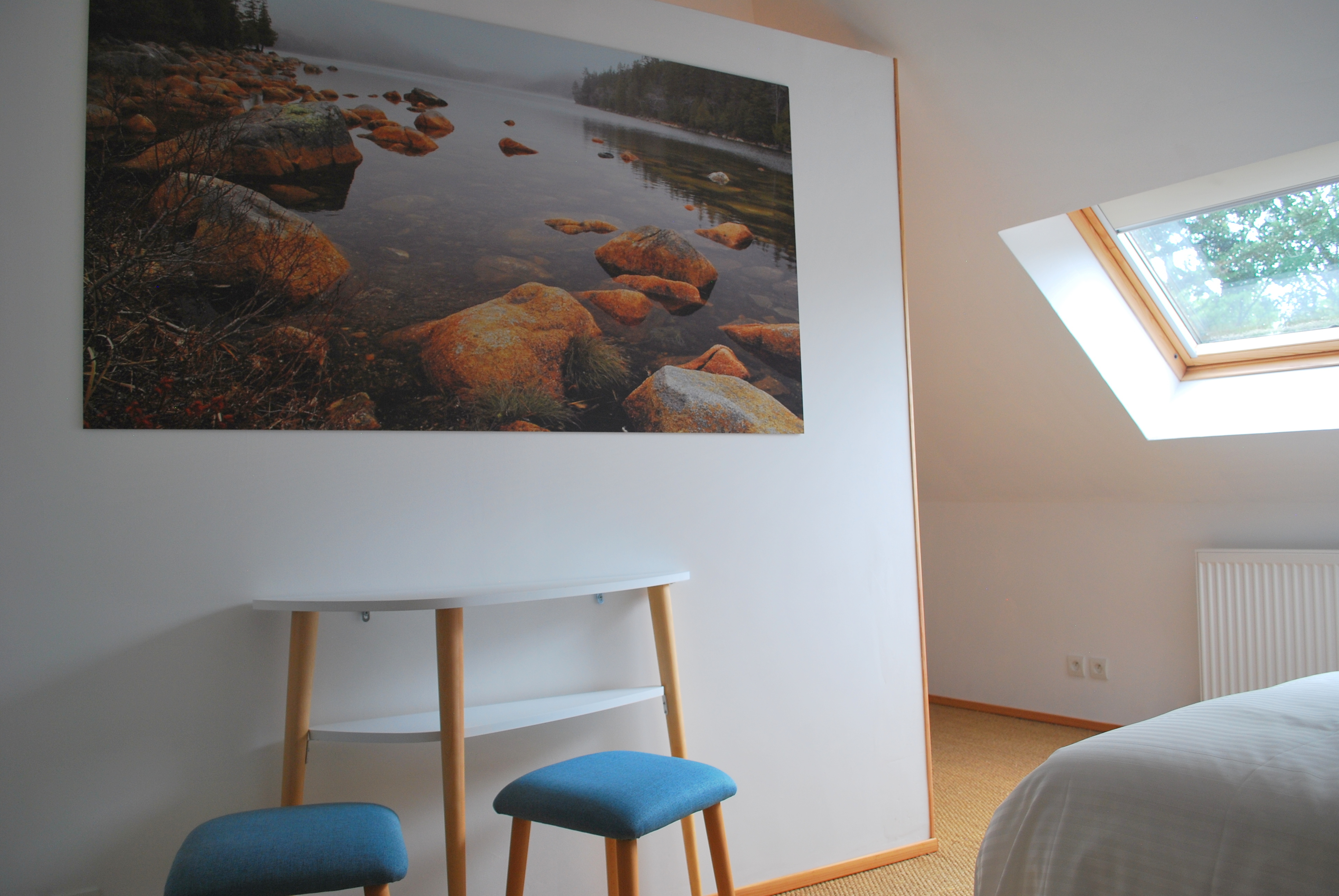 Smaller room (20m²) under the attic, with 2 single beds (90x200cm). Private shower, washbasin and toilet. Air conditioning.